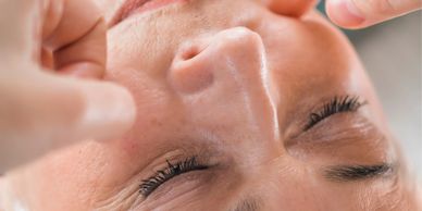 Facial massage with marma point (vital energy point) activation across the face and head to soften tension in the face, jaw, and scalp—releasing stress lines, emotional heaviness, and enhancing clarity, sleep, and sensory awareness. The facial points are intimately connected to the brain, hormones, digestion, sinuses, eyes, ears, and nervous system.